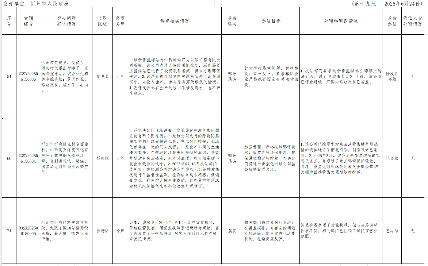 中央生態(tài)環(huán)境保護督察組群眾信訪舉報轉辦和邊督邊改公開情況一覽表(第十九批)