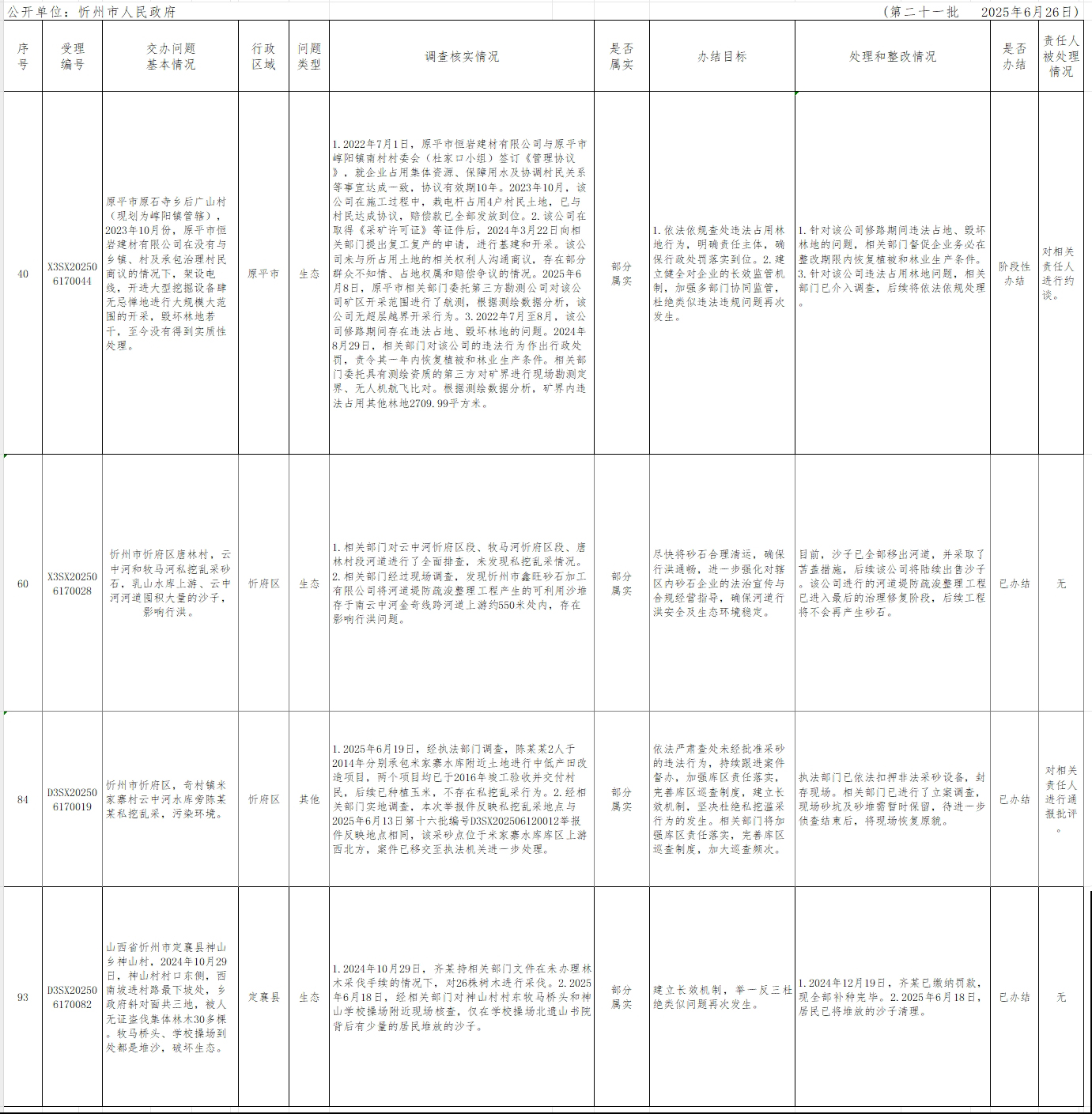 中央生態(tài)環(huán)境保護督察組群眾信訪舉報轉(zhuǎn)辦和邊督邊改公開情況一覽表(第二十一批)