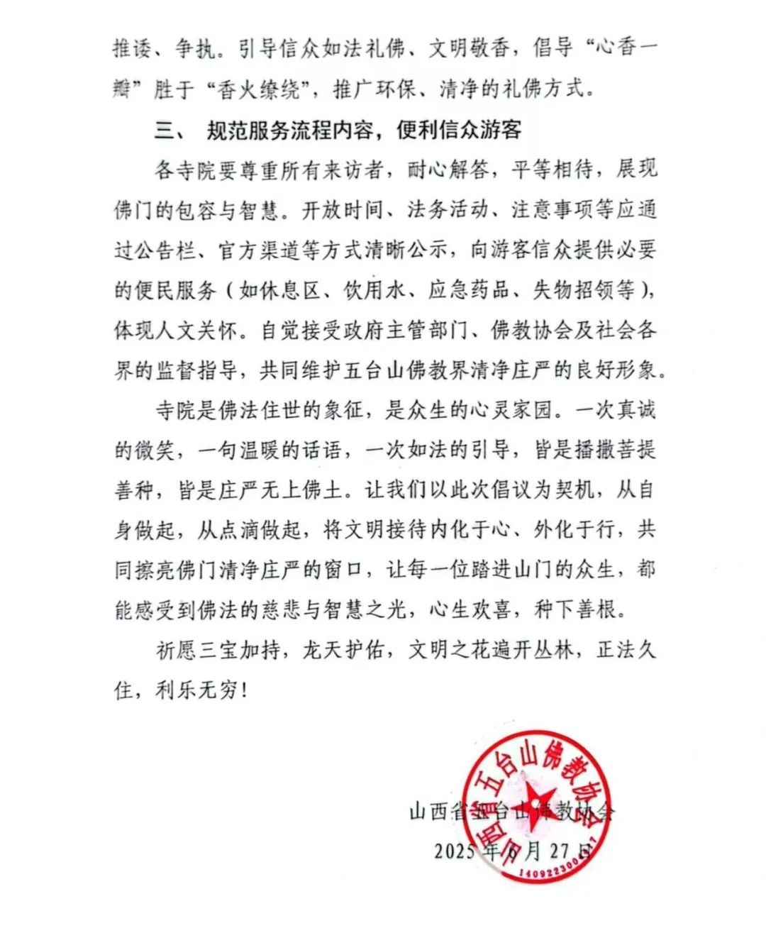 山西省五臺(tái)山佛教協(xié)會(huì)關(guān)于文明接待來(lái)山信眾的倡議書(shū)