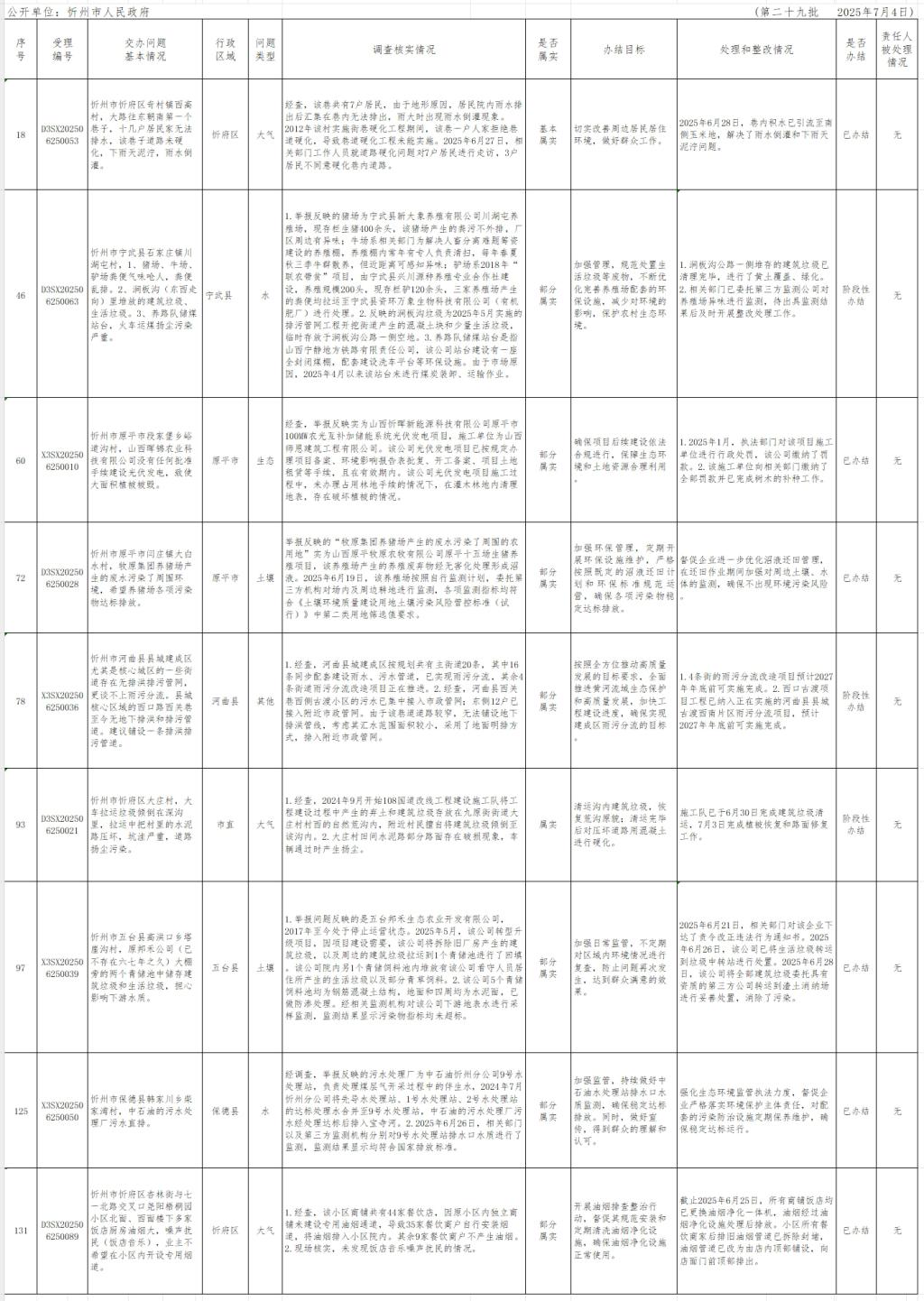 中央生態(tài)環(huán)境保護(hù)督察組群眾信訪(fǎng)舉報(bào)轉(zhuǎn)辦和邊督邊改公開(kāi)情況一覽表(第二十九批).xlsx