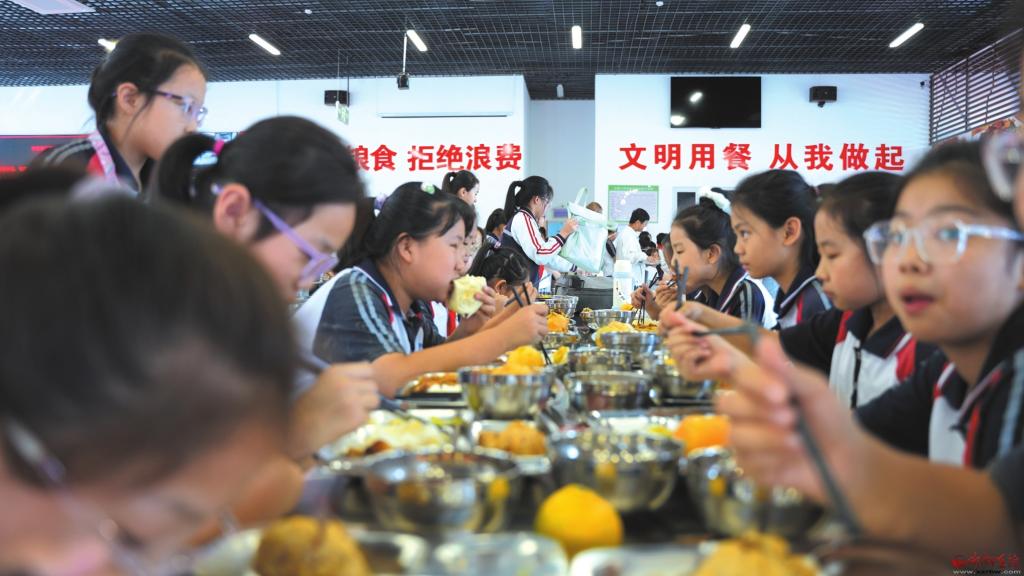 走進長城小學(xué),1535.25平方米的校內(nèi)餐廳里,900余名師生在老師引導(dǎo)下有序取餐、就餐,餐盤里葷素搭配的飯菜色香味俱全,孩子們的臉上滿是笑意?!耙郧鞍謰尮ぷ髅?,我每天得坐校車來回跑,現(xiàn)在有了午托太幸福了!午餐每天不重樣,有肉有湯,比媽媽做得還香!”六年級學(xué)生李宸慶捧著飯菜笑著說。