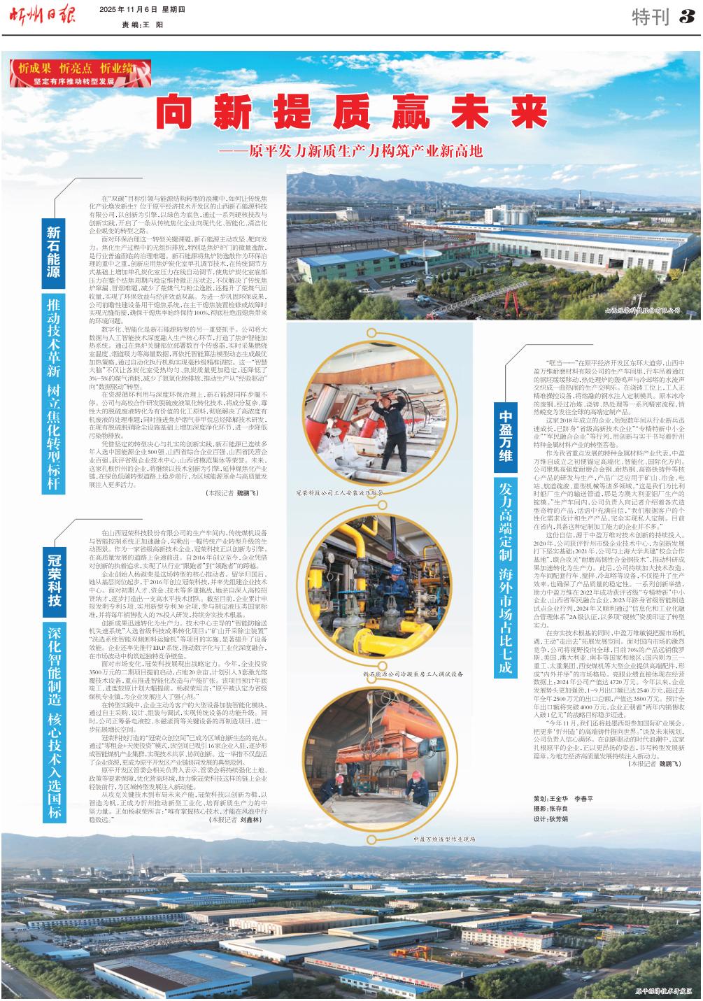 從攻克關(guān)鍵技術(shù)到布局未來(lái)產(chǎn)能,冠榮科技以創(chuàng)新為楫,以智造為帆,正成為忻州推動(dòng)新型工業(yè)化、培育新質(zhì)生產(chǎn)力的中堅(jiān)力量。正如楊淑榮所言:“唯有掌握核心技術(shù),才能在風(fēng)浪中行穩(wěn)致遠(yuǎn)?!保ū緢?bào)記者劉鑫林)
