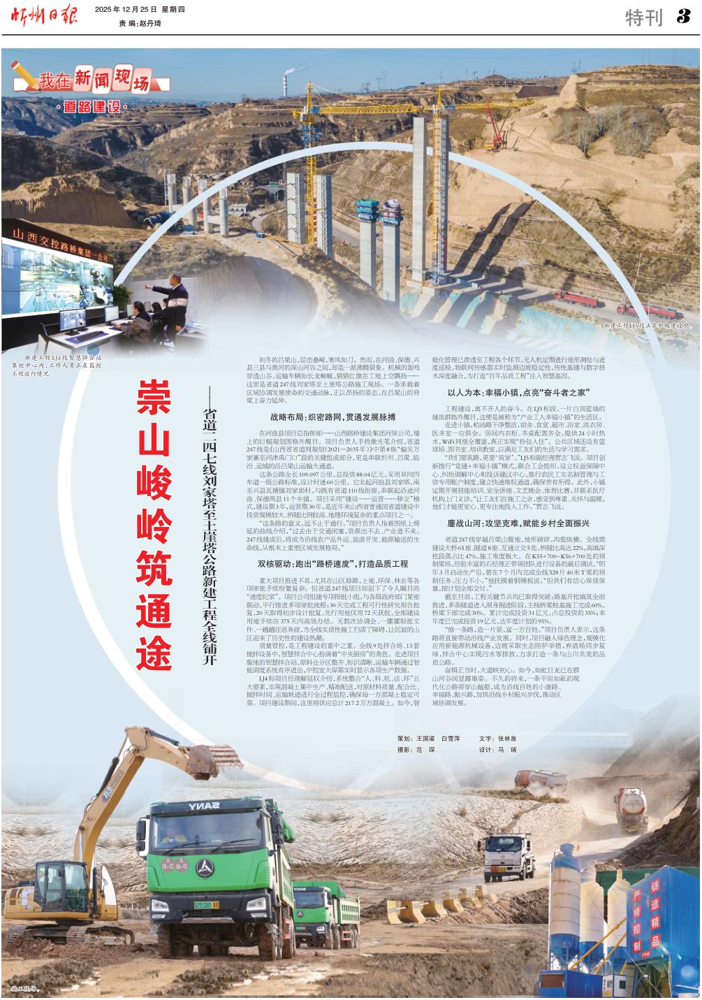 “這條路的意義,遠(yuǎn)不止于通行?!表?xiàng)目負(fù)責(zé)人指著圖紙上綿延的曲線介紹,“過去由于交通閉塞,資源出不去、產(chǎn)業(yè)進(jìn)不來。247線建成后,將成為沿線農(nóng)產(chǎn)品外運(yùn)、旅游開發(fā)、能源輸送的生命線,從根本上重塑區(qū)域發(fā)展格局。”