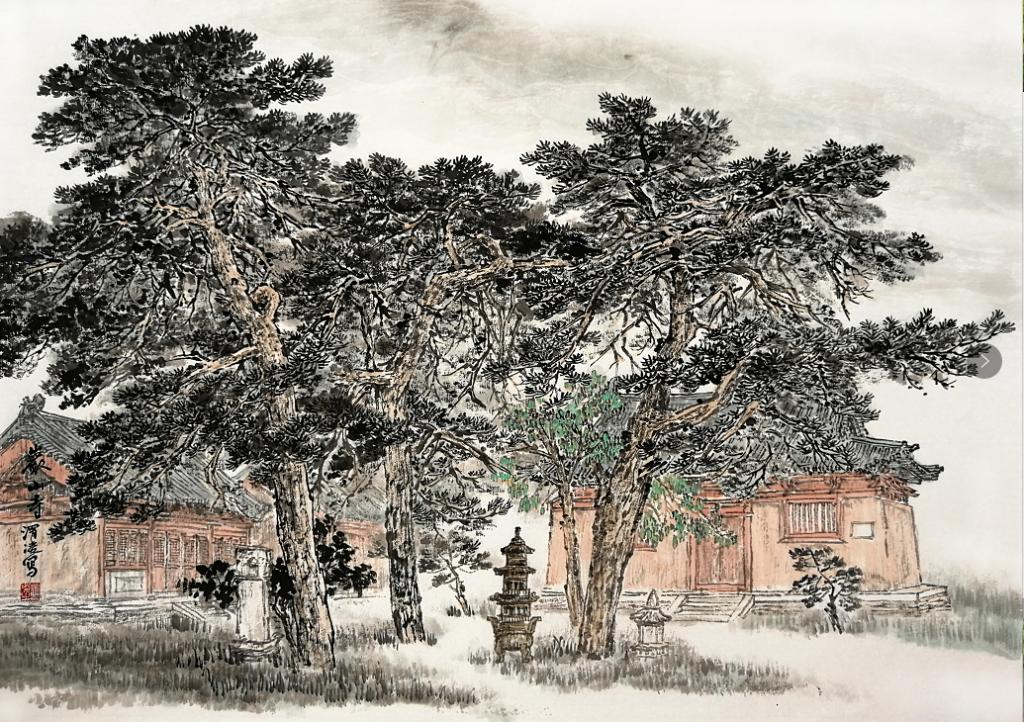 后來因為他繪畫上取得的成績,調到了忻府區(qū)文聯(lián)工作。條件好了,畫的畫更多了,畫風依然樸實親切,給人一種視覺的舒適感。這幾年他是在一路前進的,他筆下的線條清朗有力,墨色變化也更加豐富,畫中有了渾厚華滋的氣象。細看他的畫,樸實中蘊藏著精巧,拙拙的行筆中偶露鋒厲,給畫面帶來活力生機。我們在一起寫生,他在畫面經營上、構圖處理上總能給人意想不到的驚喜。畫面虛實處理把握的恰到好處,又能準確表現(xiàn)自然原貌的神采。于不知不覺中將自己的審美和情感融入了畫中,完成的寫生總比自然景色更加生動、更吸引人的目光,但又讓你看不出他是在哪里做了手腳。