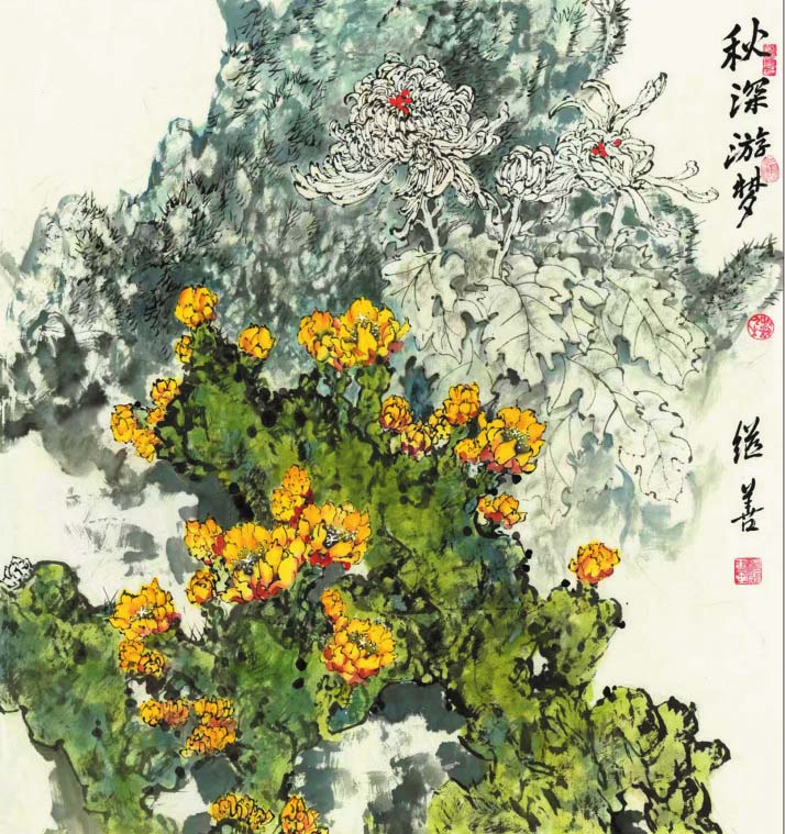 中國美術家協(xié)會會員郜繼善先生長期從事繪畫藝術工作,擅長花鳥畫和人物畫,如今在重彩花鳥畫創(chuàng)作領域也取得了不俗成就?;B畫是中國傳統(tǒng)的三大畫科之一,也是中國畫中最富于民族文化特性的表現門類之一,其描繪對象不僅僅是花與鳥,而是泛指花卉、蔬果、草蟲、翎毛、六畜、走獸等各種動植物。筆墨是心性的載體,也是藝術的軌跡。郜繼善先生的花鳥畫創(chuàng)作一直遵循著傳統(tǒng)構圖,作品筆墨流暢,形象生動,既是自然萬物的真實寫照,也是其個人情懷、境界、氣象的外在表達,融入了個人對世間萬象的感知和對生命的領悟,處處透露出畫家對自然之美的悉心體味和對精神家園的無限憧憬。