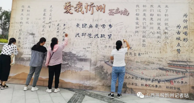 在遺山公園舉行志愿活動的志愿者們興奮地簽下名字后這樣說:“忻州是我們共同的家園,創(chuàng)建文明城市人人有責(zé)。今天我們在此寫下了自己的名字和對家鄉(xiāng)的深深祝福,這是一面見證墻,更是一面承諾墻,相信忻州會越來越好!”