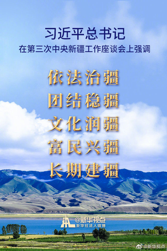 細(xì)心的人們不難發(fā)現(xiàn),這次座談會則將有關(guān)要求拓展為“依法治疆、團(tuán)結(jié)穩(wěn)疆、文化潤疆、富民興疆、長期建疆”,增加了“文化潤疆”和“富民興疆”。