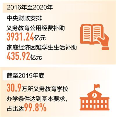 目前,全國1.54億城鄉(xiāng)義務(wù)教育階段學生都享受著一份“大禮包”:免除學雜費、免費提供教科書,家庭經(jīng)濟困難學生還能補助生活費。2016年至2020年,中央財政共安排義務(wù)教育公用經(jīng)費補助3931.24億元,家庭經(jīng)濟困難學生生活補助435.92億元,免費教科書補助712.13億元。