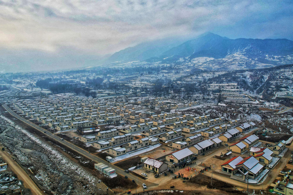 這是甘肅省臨夏回族自治州積石山縣劉集鄉(xiāng)劉集村集中安置點(2024年12月6日攝,無人機(jī)照片)。新華社發(fā)(張維吉 攝)