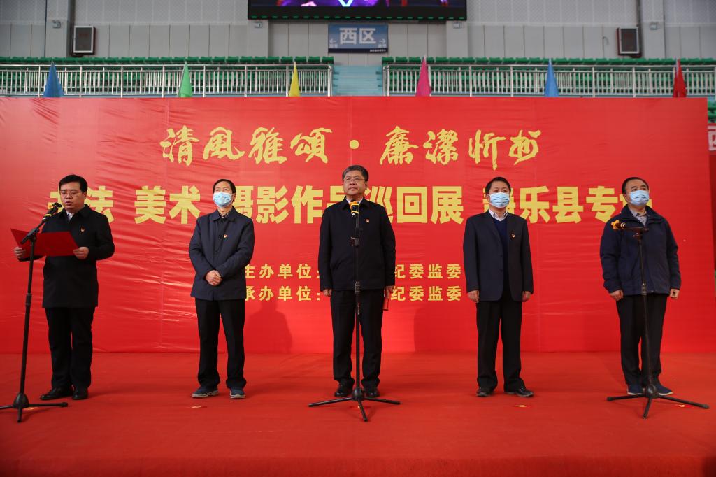 2020年12月2日,“清風(fēng)雅頌·廉潔忻州”書法美術(shù)攝影作品展靜樂站巡展開展儀式在靜樂縣體育中心舉行,縣四大班子領(lǐng)導(dǎo)出席開展儀式,縣委常委、縣紀(jì)委書記、監(jiān)委主任方筆計(jì)主持。