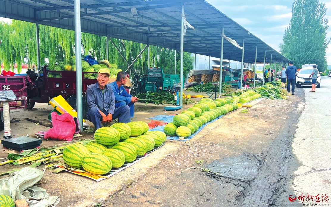 市場有回響,品質(zhì)過硬銷路旺。在村里的瓜果交易市場,75歲的鄔培林攤位前,一排排個頭飽滿的西瓜格外顯眼。有著多年種植經(jīng)驗的他對市場行情了如指掌:“西瓜上市半個多月了,剛開始賣兩元一斤,現(xiàn)在是6角一斤,正在陸續(xù)降價?!彪m然價格隨上市時間有所回落,但西瓜品質(zhì)好不愁銷路。