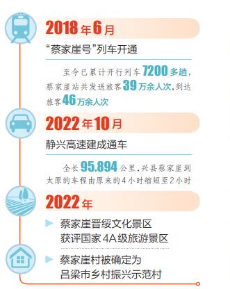 和王先生一樣,近年來,很多游客選擇乘坐火車到蔡家崖旅行,而蔡家崖的村民們很多會(huì)乘坐火車到外地上學(xué)和工作。據(jù)蔡家崖火車站值班站長(zhǎng)蔣偉介紹,自2018年太原至蔡家崖的列車開通以來,已累計(jì)開行7200多趟,該站發(fā)送旅客39萬余人次,到達(dá)旅客46萬余人次。