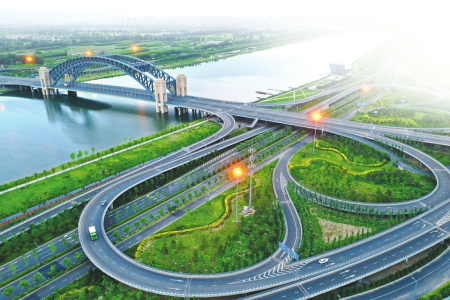 晉陽(yáng)橋,形如彩帶、態(tài)似彩虹,完美地詮釋了傳統(tǒng)與現(xiàn)代交融的設(shè)計(jì)理念,展現(xiàn)出莊重的對(duì)稱式美。夕陽(yáng)西下,站在晉陽(yáng)橋段東岸“汾河晚渡”觀景平臺(tái)遠(yuǎn)眺西山,天際線、山脊線、水岸線層次分明,河面波光粼粼,畫(huà)舫古樸典雅,晉陽(yáng)橋雄偉絢麗,呈現(xiàn)出一幅河、舫、橋、山渾然一體的秀美畫(huà)卷。