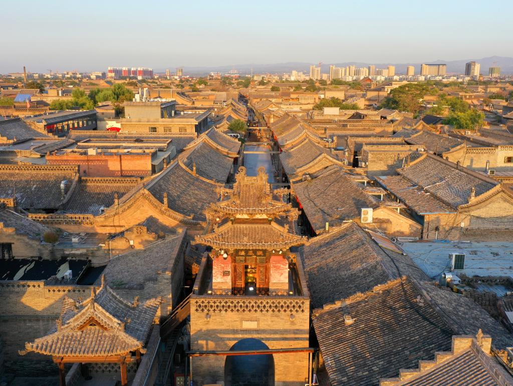 圖為航拍平遙古城