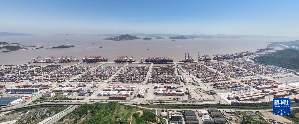 5月9日拍攝的寧波舟山港穿山港區(qū)(無人機(jī)全景照片)。新華社記者 翁忻旸 攝