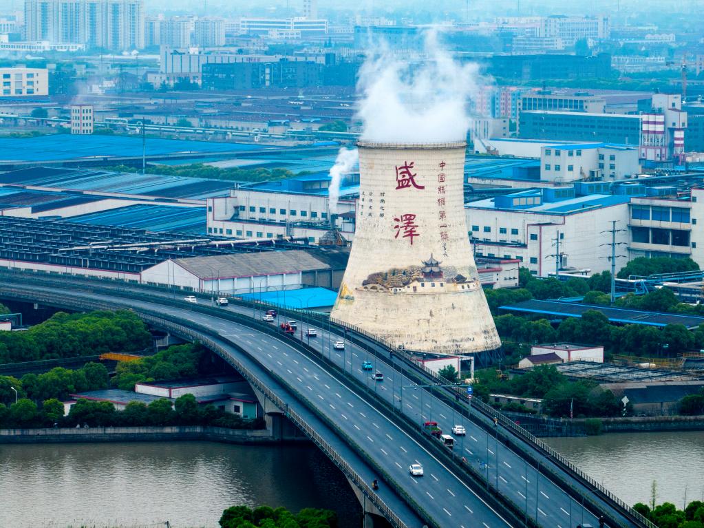 圖為位于蘇州市吳江區(qū)盛澤鎮(zhèn)南三環(huán)高架橋一側(cè)的白色冷卻塔。(高剛攝)