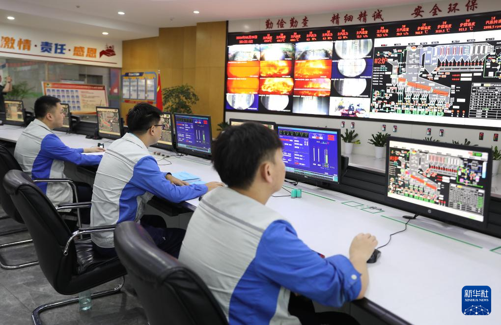 6月29日,在江西南昌固廢處理循環(huán)經(jīng)濟產(chǎn)業(yè)園,生活垃圾焚燒發(fā)電項目的工作人員在中控室監(jiān)控設備運轉情況。新華社記者 杜瀟逸 攝
