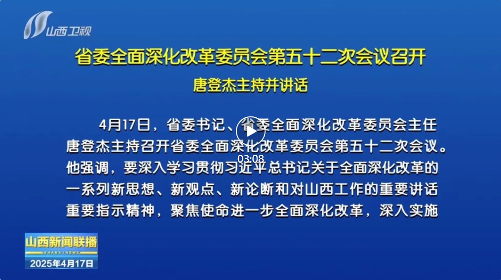 4月17日,省委書記、省委全面深化改革委員會主任唐登杰主持召開省委全面深化改革委員會第五十二次會議。他強(qiáng)調(diào),要深入學(xué)習(xí)貫徹習(xí)近平總書記關(guān)于全面深化改革的一系列新思想、新觀點(diǎn)、新論斷和對山西工作的重要講話重要指示精神,聚焦使命進(jìn)一步全面深化改革,深入實施改革攻堅行動,突出抓落實的鮮明導(dǎo)向,凝心聚力、實干篤行,不折不扣推進(jìn)黨中央決策部署及省委工作安排落地見效,為中國式現(xiàn)代化山西實踐提供強(qiáng)勁動力。