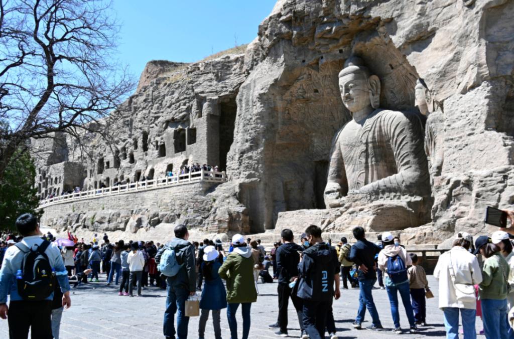 ▲2023年5月,游客在大同云岡石窟游覽。云岡石窟的開鑿始于北魏時期,為中國規(guī)模最大的古代石窟群之一,與敦煌莫高窟、洛陽龍門石窟和天水麥積山石窟并稱為中國四大石窟藝術寶庫。山西日報記者劉通攝