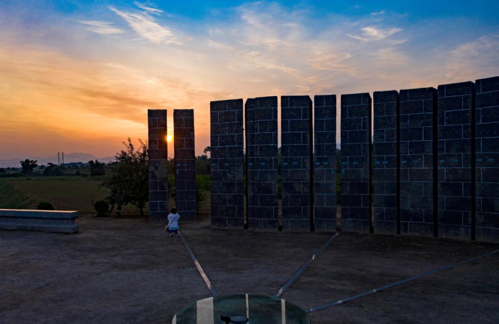 ▲2023年6月21日,人們在臨汾市襄汾縣陶寺遺址觀象臺觀看日出天文景象。當日是二十四節(jié)氣“夏至”,在山西省臨汾市襄汾縣陶寺遺址觀象臺,人們近距離體驗“太陽-觀測縫-觀測點”之間形成的三點一線天象奇觀,了解古代確定季節(jié)、節(jié)氣,安排農耕的天文歷法。陶寺古觀象臺距今約4700年,是陶寺遺址考古中的重大發(fā)現(xiàn)。李現(xiàn)俊攝