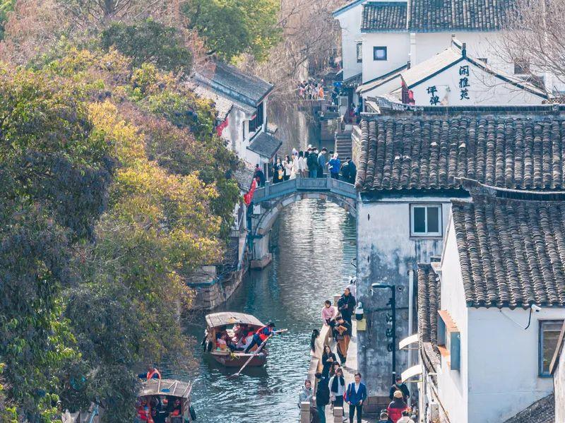 △眾多市民游客在平江歷史文化街區(qū)游玩。
