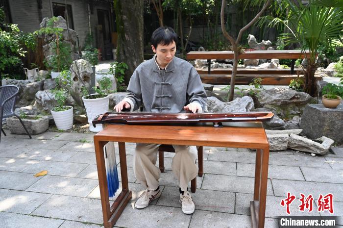 圖為古琴教師高廷鑫在江蘇揚(yáng)州仁豐里歷史文化街區(qū)的永樂(lè)琴坊彈奏古琴。國(guó)璇 攝
