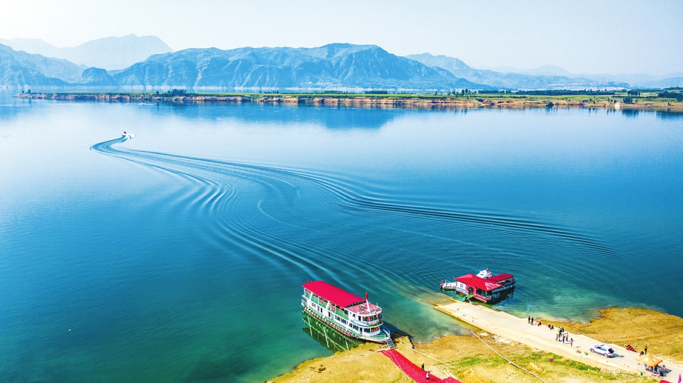 5月5日,在垣曲縣古城國(guó)家濕地公園內(nèi),游客或乘游輪、或乘快艇,游覽濕地如詩如畫美景,樂享假日。近年來,隨著當(dāng)?shù)丶哟鬂竦亻_發(fā)與保護(hù)力度,黃河濕地生態(tài)環(huán)境得以明顯改善,生態(tài)文明建設(shè)成果更好地惠及人民。