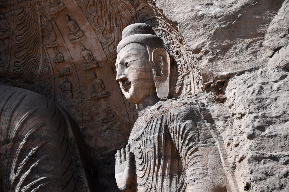 山西大同云岡石窟的佛像(2021年5月9日攝)。