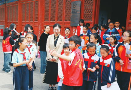 小志愿者為游客講解。本報記者馬占富攝