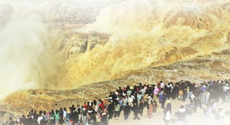 “壺口”的稱謂,最早見于《尚書·禹貢》中,如“既載壺口,治梁及岐”“壺口、雷首,至于太岳”,都與傳說中大禹治水的路線與策略有關(guān),壺口是大禹治水的始發(fā)之地。黃河壺口瀑布旅游區(qū)是國家5A級旅游景區(qū),是中國第二大瀑布,全世界最大的黃色瀑布。站在壺口觀景臺往上看,只見洶涌的黃河水簇?fù)碇?、吶喊著撲到眼前,其勢如千軍萬馬,漫山遍野般涌來,到了壺口,那一排排的巨浪在翻著水花馳騁飛奔中,突然墜入深坑,發(fā)出了震耳的嘶鳴聲,濺起了漫天水霧,再簇?fù)碇枷蜻h(yuǎn)方……而此時(shí)的你,只會感覺到大自然的偉岸和自己的渺小。