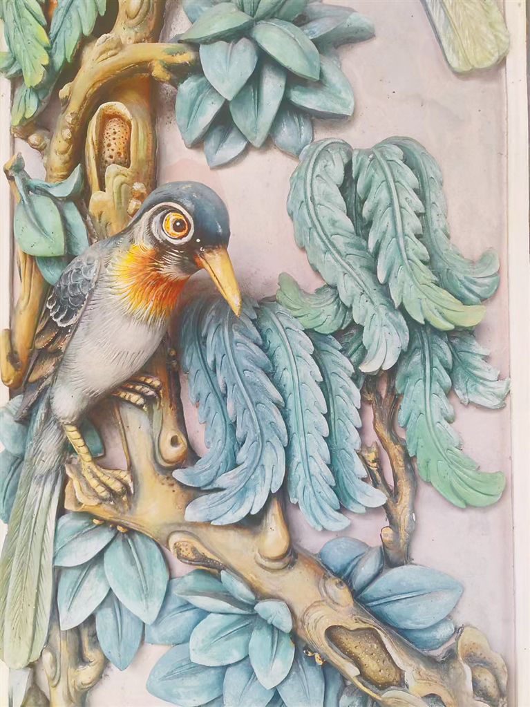 在海南的灰塑作品中,留白的運(yùn)用同樣有“以無(wú)勝有”的視覺(jué)效果?!盎宜茏髌飞饰宀拾邤蹋谎劭催^(guò)去容易產(chǎn)生錯(cuò)亂的感覺(jué),這時(shí)候留白就顯得很重要?!卞竞iw酒店負(fù)責(zé)人符燕舞說(shuō),灰塑作品有明顯的寫實(shí)風(fēng)格,所呈現(xiàn)的物象紛繁多彩。如果要將灰塑作為一種藝術(shù)品保留下來(lái),用留白的手法為作品增添美感十分必要。
