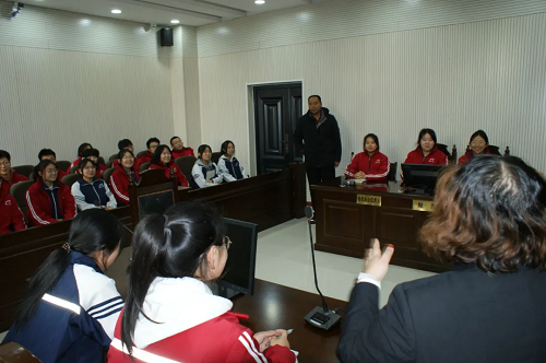 在干警的指導(dǎo)下,同學(xué)們模擬庭審現(xiàn)場,從審判長、審判員到公訴人、辯護人、被告人等,大家紛紛扮演起了不同的角色。