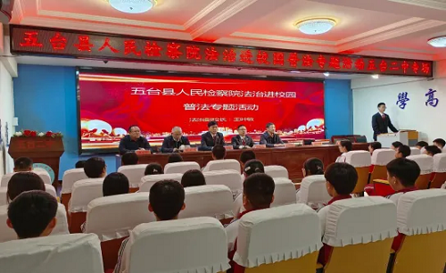 春風(fēng)拂面,法治潤(rùn)心。為進(jìn)一步增強(qiáng)青少年的法治觀念和自我保護(hù)能力,有效預(yù)防違法犯罪的發(fā)生,4月10日,五臺(tái)縣檢察院黨組副書記、主持日常工作的副檢察長(zhǎng)牛鵬飛,第一檢察部主任王葉敏一行走進(jìn)五臺(tái)縣第二中學(xué)開展法治進(jìn)校園普法活動(dòng)。