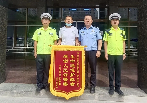 2025年9月12日上午,五臺籍市民張先生特意從太原驅車趕到忻州市公安局交通管理支隊一大隊,送上一面印有“生命通道護航者,感謝人民好警察”的錦旗,誠摯感謝申高平、馮永剛兩位交警同志在危急時刻開辟綠色通道,為其家人爭取到寶貴的救治時間。