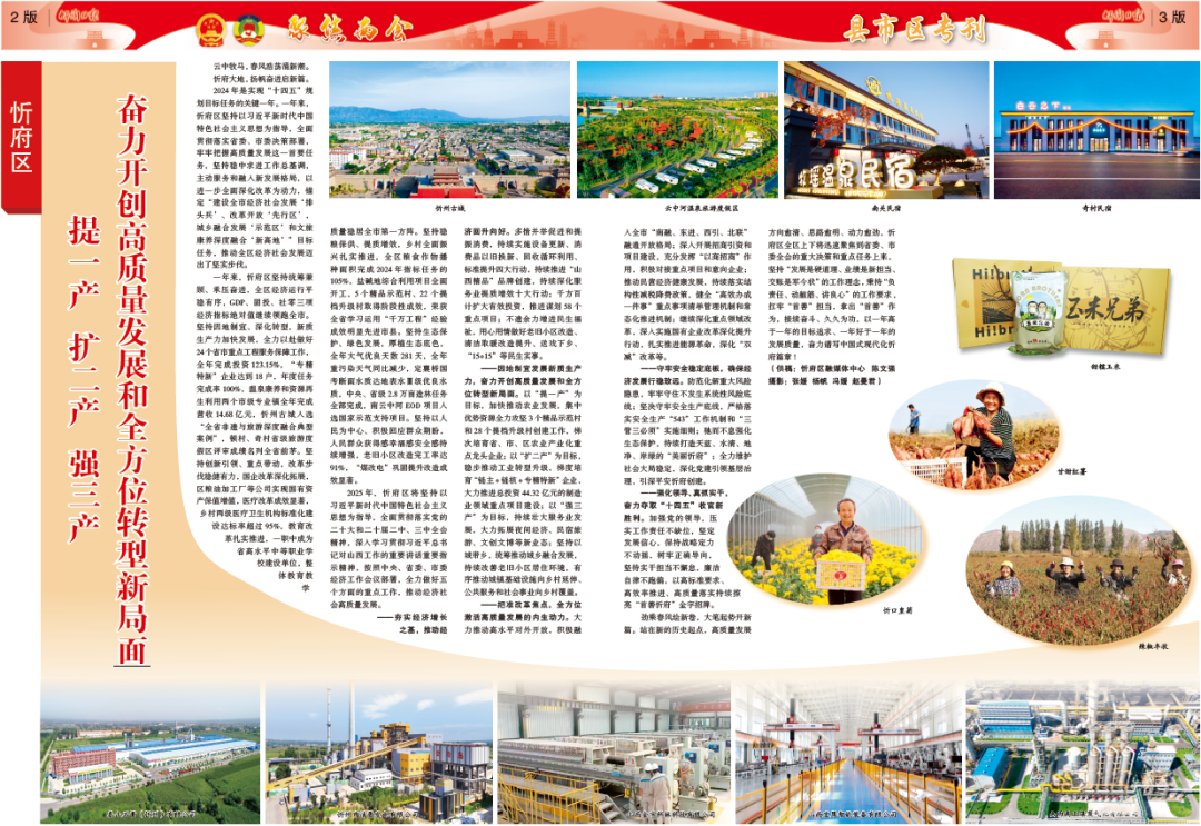 2025年,忻府區(qū)將堅(jiān)持以習(xí)近平新時(shí)代中國(guó)特色社會(huì)主義思想為指導(dǎo),全面貫徹落實(shí)黨的二十大和二十屆二中、三中全會(huì)精神,深入學(xué)習(xí)貫徹習(xí)近平總書(shū)記對(duì)山西工作的重要講話(huà)重要指示精神,按照中央、省委、市委經(jīng)濟(jì)工作會(huì)議部署,全力做好五個(gè)方面的重點(diǎn)工作,推動(dòng)經(jīng)濟(jì)社會(huì)高質(zhì)量發(fā)展。