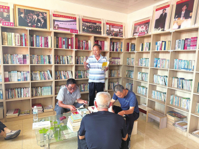 9月8日下午2時,永濟(jì)市卿頭鎮(zhèn)張坊村村民杜德建家,不時有村民熟絡(luò)地推門進(jìn)來?!袄隙牛襾碚冶緯?!”一聲招呼后,便徑直走向二樓。書頁翻動的沙沙聲、偶爾傳來的討論聲,讓這個看似普通的農(nóng)家小院,洋溢著不普通的書香氛圍。