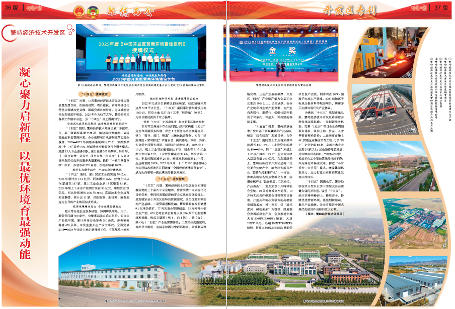 凝心聚力啟新程 以最優(yōu)環(huán)境育最強動能 “十四五”圓滿收官 “十四五”時期,山西繁峙經(jīng)濟技術(shù)開發(fā)區(qū)錨定高質(zhì)量發(fā)展目標(biāo),在招商引資、項目建設(shè)、營商環(huán)境優(yōu)化等重點領(lǐng)域攻堅克難,圓滿完成各項任務(wù),為區(qū)域經(jīng)濟社會發(fā)展筑牢根基。2025年作為收官之年,繁峙經(jīng)開區(qū)各項工作穩(wěn)中有進,為“十四五”畫上圓滿句號。 全面深化改革縱深推進政務(wù)服務(wù)效能顯著提升 “十四五”期間,繁峙經(jīng)濟技術(shù)開發(fā)區(qū)累計承接省、市、縣三級賦權(quán)事項3338項,構(gòu)建起權(quán)責(zé)清晰、運轉(zhuǎn)高效的審批管理體系。企業(yè)投資項目承諾制改革實現(xiàn)全覆蓋,2020—2025年實施承諾制項目57個,審批效率較“十三五”提升75%。創(chuàng)新推出全程領(lǐng)辦代辦服務(wù)模式,組建35人專業(yè)服務(wù)團隊,累計服務(wù)202項事項。2023年,《“聯(lián)合審批”共發(fā)力 項目審批“加速度”》入選全省開發(fā)區(qū)優(yōu)化審批服務(wù)典型案例。推行“一枚印章管審批”以來,辦理事項270余件,按時辦結(jié)率100%。 經(jīng)濟實力穩(wěn)步躍升產(chǎn)業(yè)格局持續(xù)優(yōu)化 “十四五”期間,累計完成工業(yè)投資超99億元,2025年預(yù)計達12.2億元,同比增長26%。經(jīng)營主體從76家增至137家,規(guī)上工業(yè)企業(yè)從17家增至33家。2025年規(guī)上工業(yè)總產(chǎn)值預(yù)計突破80億元,增加值達21億元,同比分別增長25%和26%;高新技術(shù)企業(yè)培育實現(xiàn)翻番,累計達11家,以新能源、新材料、裝備制造為主導(dǎo)的產(chǎn)業(yè)格局初步形成。 服務(wù)保障精準(zhǔn)有力安全發(fā)展行穩(wěn)致遠(yuǎn) 建立常態(tài)化企業(yè)服務(wù)機制,協(xié)調(diào)解決用地、用工、融資等問題300余件,化解多起重點難點糾紛。安全生產(chǎn)防線牢固,累計開展安全督查280余次,排查整改隱患450余條,未發(fā)生重大生產(chǎn)安全事故。全面完成2018—2024年違法占地組卷報批工作,有效規(guī)范土地使用秩序。 規(guī)劃引領(lǐng)科學(xué)布局要素保障堅實有力 2022年完成區(qū)位調(diào)整及四至核定,獲批城鎮(zhèn)開發(fā)邊界5.39平方公里?!笆奈濉逼陂g累計獲批建設(shè)用地1560畝,供應(yīng)土地1227畝(其中“標(biāo)準(zhǔn)地”30宗),為項目建設(shè)提供了有力保障。 創(chuàng)新“13210”全周期服務(wù) 打造營商環(huán)境新標(biāo)桿 針對項目落地中存在的問題,經(jīng)開區(qū)構(gòu)建“13210”全生命周期服務(wù)機制:設(shè)立1個服務(wù)辦公室統(tǒng)籌全局,建立“領(lǐng)導(dǎo)、部門、管家”三級包保責(zé)任制,實行“進度調(diào)度+實時推送”雙輪驅(qū)動,提供落地、審批、要素、安全等十項服務(wù)承諾。機制運行成效顯著,2025年1—10月,規(guī)上工業(yè)增加值增速達37%,居全省71個工業(yè)類開發(fā)區(qū)第2位;工業(yè)投資增速達37.6%,居全省第10位。審批時限壓減至20天,建設(shè)周期縮短至11個月,企業(yè)滿意度100%。2025年9月,《“13210”服務(wù)體系》與山西綜改示范區(qū)共同榮膺“全國營商環(huán)境百佳案例”,成為山西省唯一獲此殊榮的省級開發(fā)區(qū)。 “十五五”藍(lán)圖繪就 “十五五”時期,繁峙經(jīng)濟技術(shù)開發(fā)區(qū)將全面貫徹落實黨的二十屆四中全會精神,緊緊圍繞中國式現(xiàn)代化目標(biāo)任務(wù),堅持把發(fā)展經(jīng)濟的著力點放在實體經(jīng)濟上。規(guī)劃制定基于開發(fā)區(qū)獨特的資源稟賦、區(qū)位優(yōu)勢和堅實的產(chǎn)業(yè)基礎(chǔ)。一是資源稟賦優(yōu)越,繁峙縣擁有探明儲量9.1億噸的鐵礦、77噸的黃金資源儲量、33萬噸再生鋁合金產(chǎn)能、670億噸玄武巖資源以及276萬千瓦新能源核準(zhǔn)規(guī)模,構(gòu)成支撐黑(鐵)、白(鋁)、黃(金)、綠(電)“四色”產(chǎn)業(yè)的資源體系;二是區(qū)位交通便利,地處晉北樞紐,連接京津冀與中西部地區(qū),公鐵聯(lián)運網(wǎng)絡(luò)完善;三是產(chǎn)業(yè)基礎(chǔ)雄厚,開發(fā)區(qū)“四色”產(chǎn)業(yè)鏈產(chǎn)值占全縣工業(yè)比重達70%以上,已形成鐵、金全產(chǎn)業(yè)鏈和再生鋁產(chǎn)業(yè)集群,為產(chǎn)業(yè)向高端化、集群化、低碳化躍升提供了可依托、可放大、可持續(xù)的基礎(chǔ)支撐。 “十五五”時期,繁峙經(jīng)濟技術(shù)開發(fā)區(qū)基于資源稟賦和產(chǎn)業(yè)基礎(chǔ),錨定“四有四高”發(fā)展目標(biāo),力爭“十五五”期間規(guī)上工業(yè)增加值年均增長6%—8%,工業(yè)投資年均增長8%—10%,到“十五五”末規(guī)上工業(yè)總產(chǎn)值和“四上”企業(yè)營業(yè)收入雙雙突破100億元。在發(fā)展路徑上,繁峙經(jīng)濟技術(shù)開發(fā)區(qū)堅持“優(yōu)化提升傳統(tǒng)產(chǎn)業(yè)、培育壯大新興產(chǎn)業(yè)、前瞻布局未來產(chǎn)業(yè)”。一方面,推動高端裝備制造集群化發(fā)展,實現(xiàn)傳統(tǒng)產(chǎn)業(yè)“設(shè)備換芯、工藝換代、產(chǎn)品換新”,重點加快3萬噸鋅鋁合金錠、10萬噸高端列車鑄件、10萬噸玄武巖纖維復(fù)合材料等項目落地,打造具有核心競爭力的高端裝備制造基地;另一方面,以“追光逐風(fēng)、儲動未來”為引領(lǐng),因地